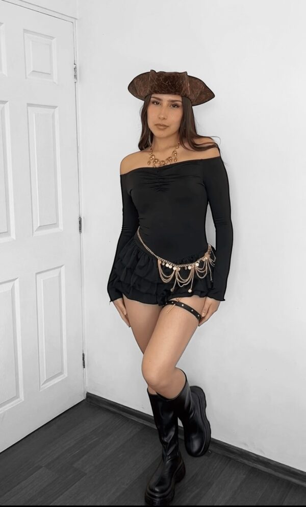 Enterito con vuelos elasticado y hombros descubiertos 🖤
