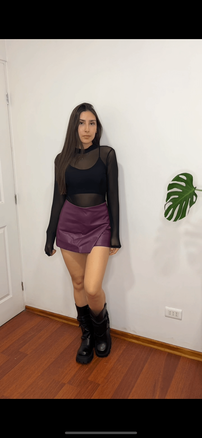 Falda Short, falda por delante y short por atrás elaborada en ecocuero y por dentro micropolar, cierre lateral y bolsillos de adorno en la parte trasera. Ideal para salir ✨