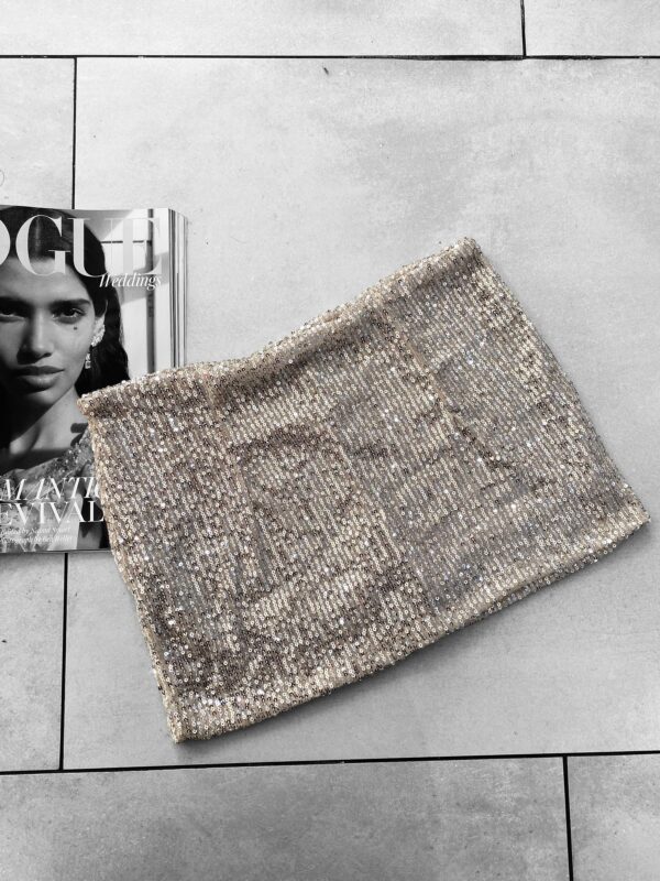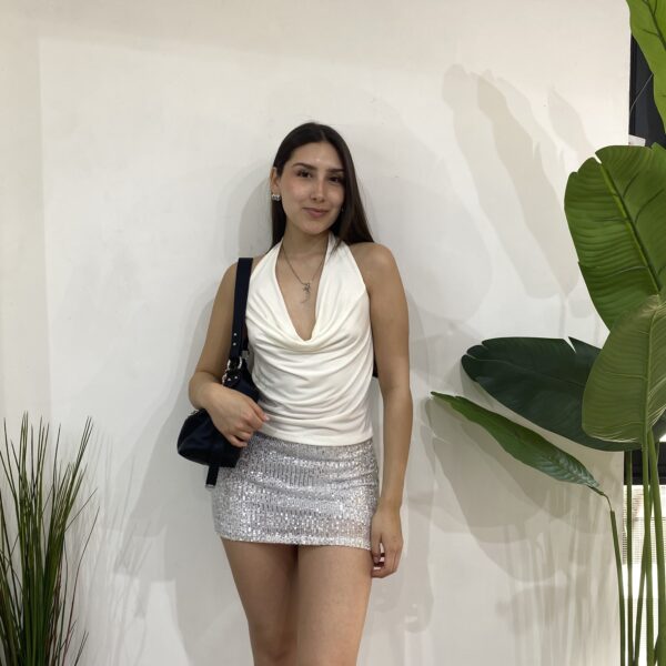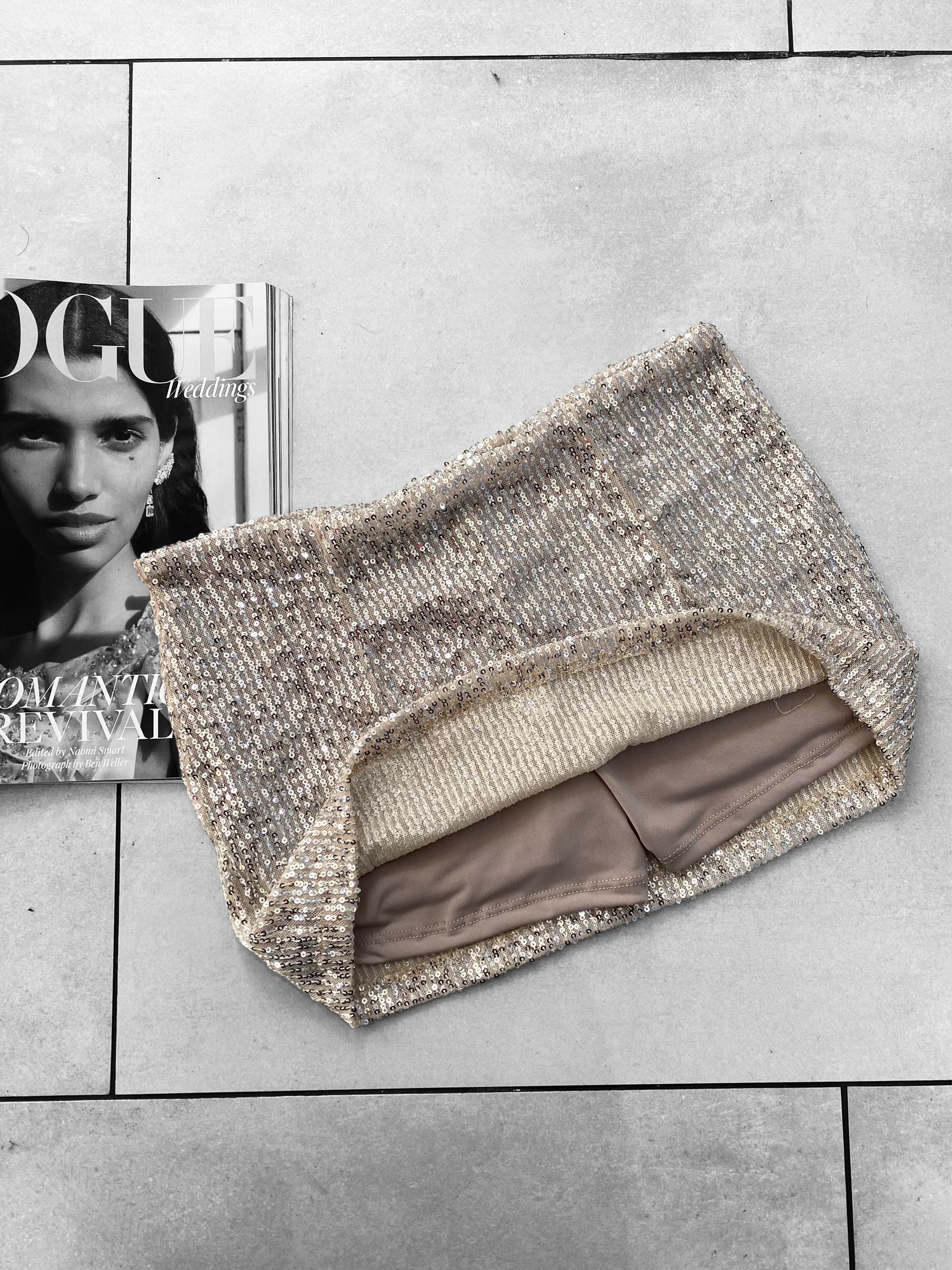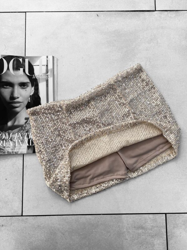 mini elaborado en material elasticado ,con lentejuelas estira 7 cm extra aprox. Contiene doble tela para que no se transparente ✨